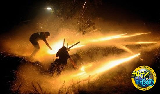据英国媒体5日报道,希腊一个小岛上的人们用传统的点燃土制火箭的方式来庆祝复活节的到来,他们向夜空发射数以千计的土制火箭,像烟火一样点燃了小镇的夜空。