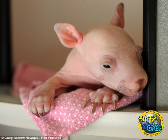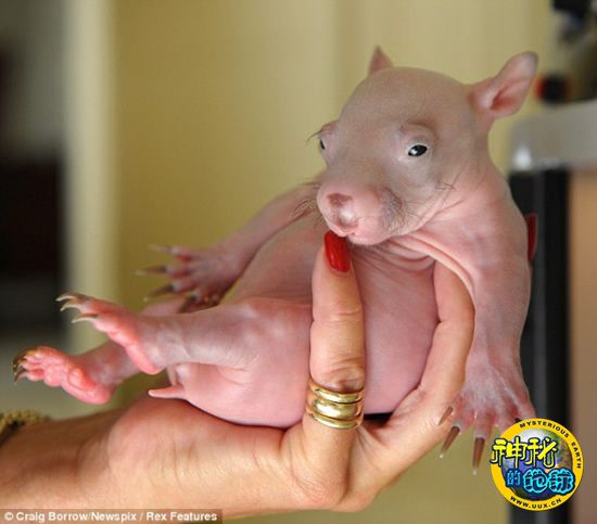卡尔曼躺在墨尔本沃兰野生动物收容所的一名兽医的手掌里,它看起来似乎在冲着照相机挥手