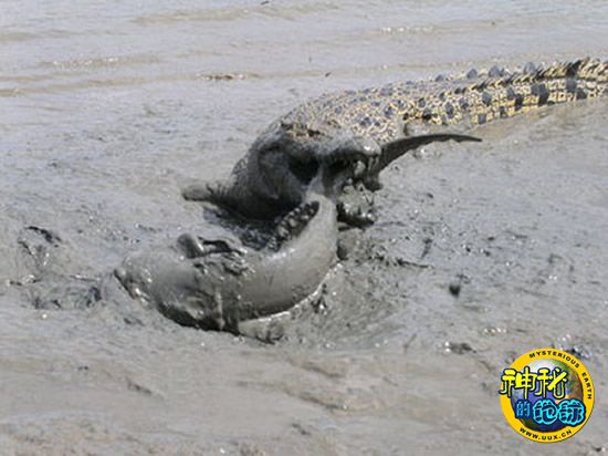 鳄鱼猎杀陷入泥潭的鲨鱼