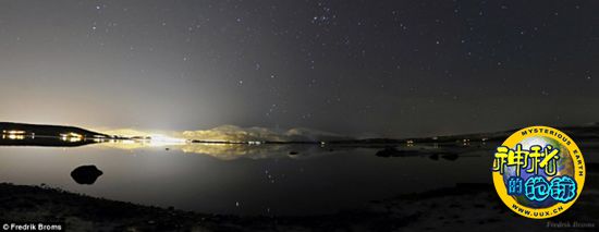 “灯光和星星”。这是在挪威克瓦尔岛附近拍摄的夜空照片。