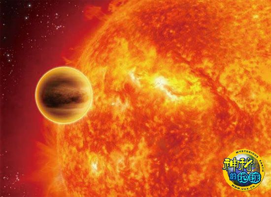 发现于2008年的WASP-12b是过去15年来在太阳系外发现的400多颗行星当中最难以理解的一颗。它围绕着御夫座中一颗质量与太阳相当的恒星运行。和大多数已知的太阳系外行星一样,WASP-12b是一颗巨大的气态行星,在这方面跟太阳系里的木星和土星有些类似。不同之处在于,它在极近的距离上围绕主星旋转,到主星的距离只有日地平均距离的1/44。另一个奇怪之处是,它的体形远远超过了天体物理模型预言的大小。根据估算,它的质量只比木星多大约50%,半径却大了80%,体积是木星的6倍!它还异常灼热,面向主星那一面的温度超过2,500℃。