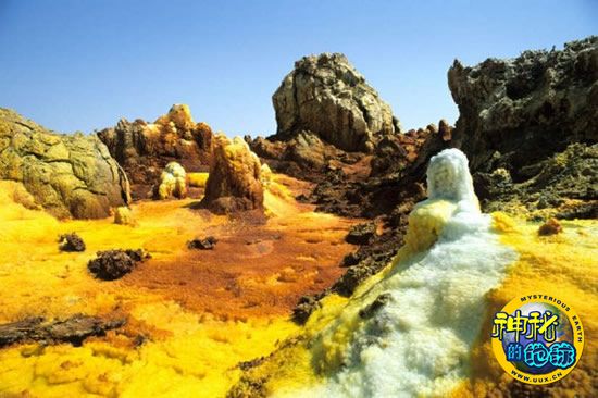 埃塞俄比亚达洛尔火山活动所导致的盐分沉淀层,构成了神奇的地貌。