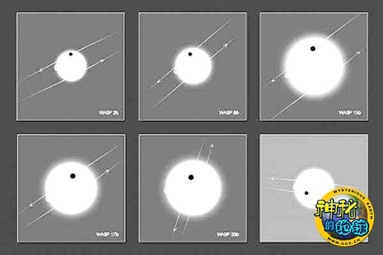 最终结果令天文学家们大感震惊,因为包括之前发现的WASP-17b,目前共有6颗系外行星的公转方向与其主恒星的旋转方向相反。