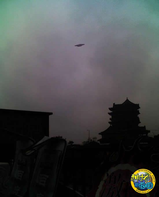 在照片中看到,虽然当时天空比较暗,但还是能清楚地看到在滕王阁上空有个呈扁圆形状的物体。