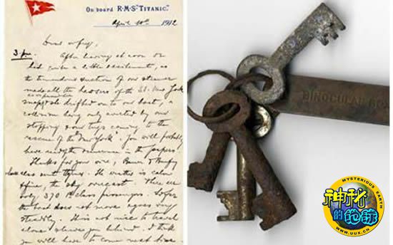在拍卖会上另一件引人注意的物品是一串钥匙,属于“泰坦尼克”号的船员大卫·布莱尔,他在最后时刻被调离邮轮,从而幸免于难。连同钥匙一起还有一个由黄铜制成的标签,上面刻有“双筒望远镜箱”的字样。据说布莱尔曾陪同“泰坦尼克”号从贝尔法斯特抵达南安普敦,但就在即将启航前被调到另一艘船上。这把钥匙最终以5.4万英镑的价格被拍走。
