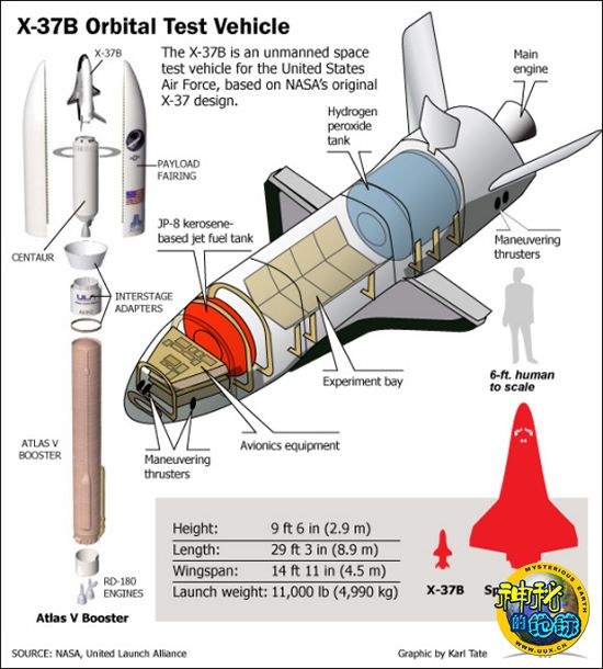 美国X-37B轨道试验飞行器图解。在4月试飞过程中,有关这种神秘空天飞机的一些新细节将最终浮出水面。