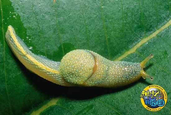 这种绿黄相间的鼻涕虫是在马来西亚沙巴地区海拔1900多米的山区森林中发现的。
