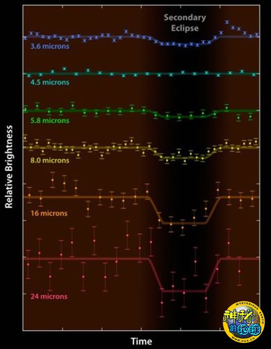 斯皮策探测到来自GJ436b微弱的光线,这种技术称为“次蚀”,“次蚀”技术是探测“凌日”行星大气成分的一项有效方法,当行星运行到主序星后面时,将行星系统前后光谱相减,就可得到行星光谱性质。这个技术由斯皮策空间天文台于2005首次试验,并测量了若干系外类木行星大气成分。这项技术由原来用于分析系外类木行星大气成分推广到用于测量系外类地行星的大气成分。美国国家航空航天局喷气推进实验室系外行星科学研究所及加州理工学院主任说。在未来的几年,我们希望能空间天文台能利用这一技术分析更多的系外类地行星的大气成分,从而发现生命的痕迹。