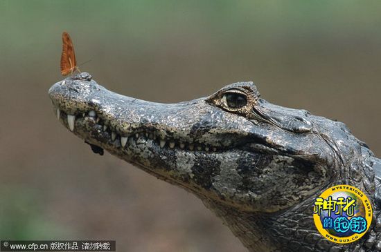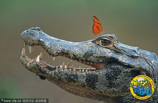 蝴蝶停在鳄鱼头上歇脚 来源: 神秘的地球 时间:2010年4月30日 10:33 摄影师Stefan Huwiler日前在巴西拍摄到一只蝴蝶停在鳄鱼头上“歇脚”的有趣画面。 蝴蝶停在鳄鱼头上歇脚 2010年4月28日消息,摄影师Stefan Huwiler日前在巴西拍摄到一只蝴蝶停在鳄鱼头上“歇脚”的有趣画面。当时这条鳄鱼正在河岸上晒太阳,蝴蝶先是在鼻尖停下,然后一路爬到了它的眼睛上方才飞走。而让人惊奇的是,整个过程中以凶残著称的鳄鱼都很平静,当它张开嘴时,看起来甚至像是在“微笑”。 China Foto Press 上一篇 下一篇 TAG: 鳄鱼 蝴蝶