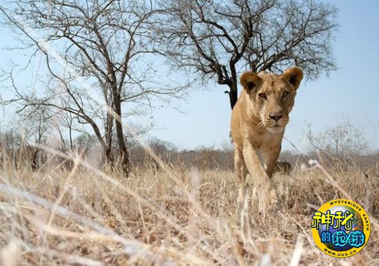 2009年夏天的现场试验中,一头雌狮靠近BeetleCam遥控车,直视镜头。这台装置的相机快门或通过无线遥控器控制,或经由定时器操控,在预先设定的间隔反复拍摄。布兰德-卢卡斯兄弟此前已在大象身上成功测试了BeetleCam,所以“信心暴涨”,将目标对准非洲的“草原之王”——狮子。他们4月19日在博客中表示,“事后看来,这是一个愚蠢的主意。”原来,放在草地上的BeetleCam遥控车惨遭这头雌狮的“蹂躏”,被缠在它的身上进入灌木丛中。