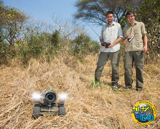 在这张照片中,布兰德-卢卡斯兄弟在2009年夏天正测试他们的发明。布兰德-卢卡斯兄弟远赴野生动物品种繁多的坦桑尼亚西南部,测试了由他们发明的“BeetleCam”遥控摄像设备。BeetleCam配备有大功率发电机、越野轮胎、寿命较长的电池以及一部数码单反相机,不久即为进入非洲灌木丛拍摄做好准备。不过,根据布兰德-卢卡斯兄弟4月19日公布的照片显示,BeetleCam看来并未对如何应对好奇的食肉动物做好准备。