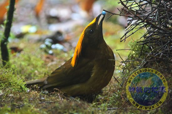 Bowerbirds are best known for attracting females by building towers of twigs and other forest materials, with some species depositing a variety of "gifts" inside. The rare Foja bird's mating moves were first photographed in 2006.