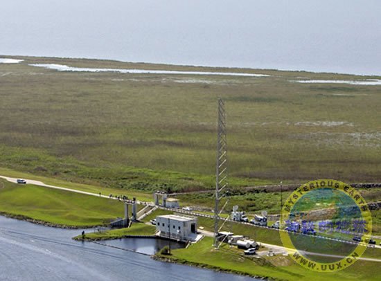 Lack of hurricane rain has shrunk Florida's Lake Okeechobee to record lows, as seen in this November 6, 2007, photo of a pumping station near the small town of Port Mayaca. The bright green land between the station and the lake is normally underwater.