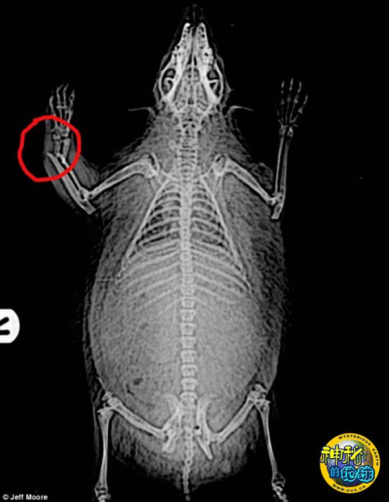 X光照片显示这只刺猬右边前腿骨折,完全康复将需要6周。