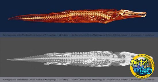 揭秘古埃及鳄鱼木乃伊 来源: 神秘的地球 时间:2010年5月05日 14:21 6.木乃伊内发现鱼钩 木乃伊内发现鱼钩(图片提供:Stanford Medicine) 赫斯特博物馆管理员刘易斯表示,已拆开鳄鱼木乃伊的低分辨率扫描显示,很多细节仍处于隐藏状态,正如下方扫描图所展示的那样。相比之下,上方的高分辨率扫描图则捕获了一些令人兴奋的新细节。在鳄鱼腹部,研究人员发现了猎物的骨骼残骸以及一个鱼钩。随后进行的分析显示,这个鱼钩是采用古埃及鱼钩制造技术制造的。鱼钩可能是鳄鱼在享用最后一餐时吞下的。威廉斯指出鱼钩并未被腐蚀,说明可能由青铜制成。 上一页1234567下一页 上一篇 下一篇