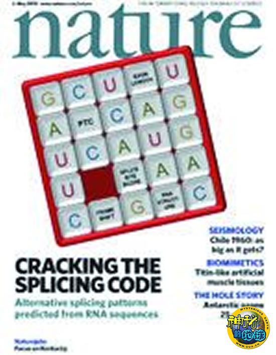 脊椎动物基因组的编码能力通过交替剪接大大增强,这使单个基因能够产生一个以上截然不同的蛋白。交替剪接决定遗传信息如何控制细胞过程,而很多人类疾病突变都影响剪接。能够从基因组序列数据预测不同交替剪接的信使RNA的表达,是基因表达领域人们所长期追寻的一个目标。多伦多大学Frey和Blencowe实验室合作开发出一种“剪接代码”,它能准确预测数百个RNA特征是怎样协同工作来调控数千个外显子依赖于组织的交替剪接的。这个代码已被用来预测交替剪接在发育和神经过程中会怎样发挥重要作用,并且为了解剪接调控的机制提供了线索。该代码还被集成到了一个网络工具中,它使研究人员能够扫描未定性的外显子和内显子序列,预测依赖于组织的剪接模式。