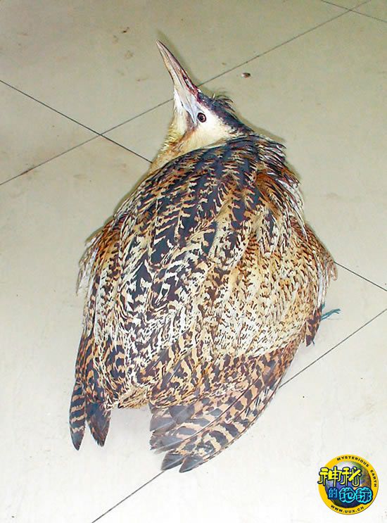 据白渔泡湿地公园的管理人员介绍,该公园设立了鸟类观测站,为研究黑龙江省野生鸟类资源,专家在公园内设了野生鸟类招引笼。前些日子,公园的工作人员正在忙着园内绿化,鸟类招引笼方向突然传来“哞哞”的怪叫声。招引笼旁哪来的牛叫声?大家赶紧跑过去看究竟,就发现了这位特殊访客。这只怪鸟看到人又紧张又生气,张开大嘴不停进攻。在请它出笼的过程中,一位工作人员的鼻子还被它啄出了血。据观测,这只怪鸟体长约60厘米,腿长30厘米,长有一对大翅膀,单翅展开长约57厘米,身上的羽毛呈黄褐色并带有黑色斑羽,叫声似老牛,10厘米长的喙很锋利。当时在现场的人都没见过这种鸟,工作人员只好拍下相关影像资料请教专家。