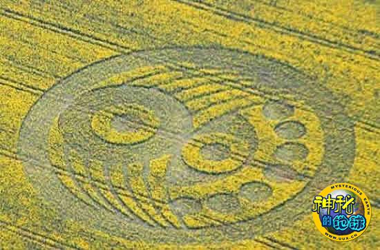 1991年7 月17日,英国一名直升飞机驾驶员飞越史温顿市附近的巴布里城堡下的麦田时,赫然发现麦田上有个等边三角形,三角形内有个双边大圈,另外每一个角上又各有一个小圈。