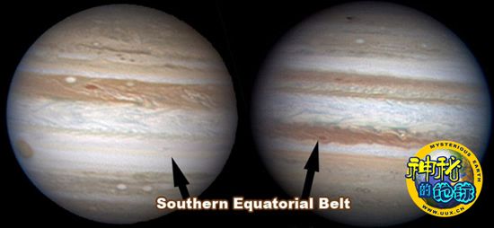 去年年底,在木星进入位于太阳后面的轨道以前,这条带状物还在。然而木星经过3个月从太阳背后“走出来”时,它的南赤道带已经消失了。新闻记者和天文爱好者鲍勃·金,又称阿斯特罗·鲍勃,是第一批注意到这一奇怪现象的人之一。他说:“只有一条带状物的木星看起来跟土星有点像,这看起了很不正常。”