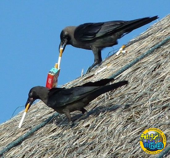 “抽烟”的乌鸦 来源: 神秘的地球 时间:2010年5月20日 11:46 “抽烟”的乌鸦 “抽烟”的乌鸦 两名英国游客日前在马尔代夫捕捉到令人啼笑皆非的一幕,几只乌鸦煞是有型的叼起香烟,在房顶尽享“快感”。 报道称,茱迪和埃利斯在马尔代夫度假时意外发现一只乌鸦竟叼着一包香烟从他们头顶飞过,并降落在临近的草屋屋顶上。 令人诧异的是,这只乌鸦颇为熟练的从烟盒中叼出一根香烟,站在屋顶的一角细细“品味”,状态十分滑稽。而它的一只同伴见状也做出了几乎同样的行动。 茱迪称,他们似乎是在“抽烟”以让自己休息片刻,即使烟并未点燃,但乌鸦们的举动还是让人忍俊不禁。 中新网 上一篇 下一篇 TAG: 乌鸦