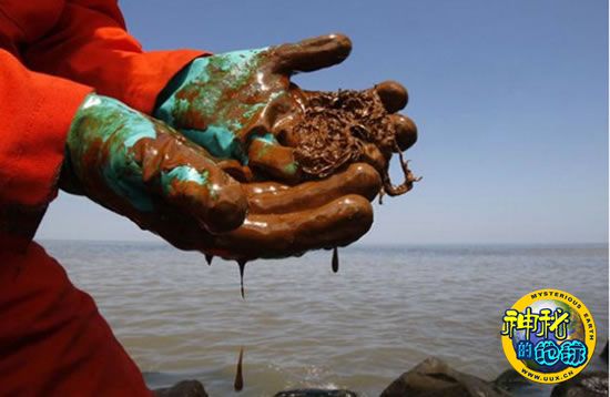 一截被石油浸染的绳子。粘稠的褐色液体,让人瞠目结舌。