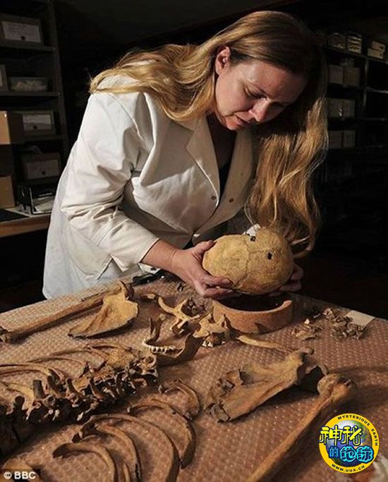 巴克贝瑞博士正在检测“刀疤武士”身旁的另一具女性尸骸