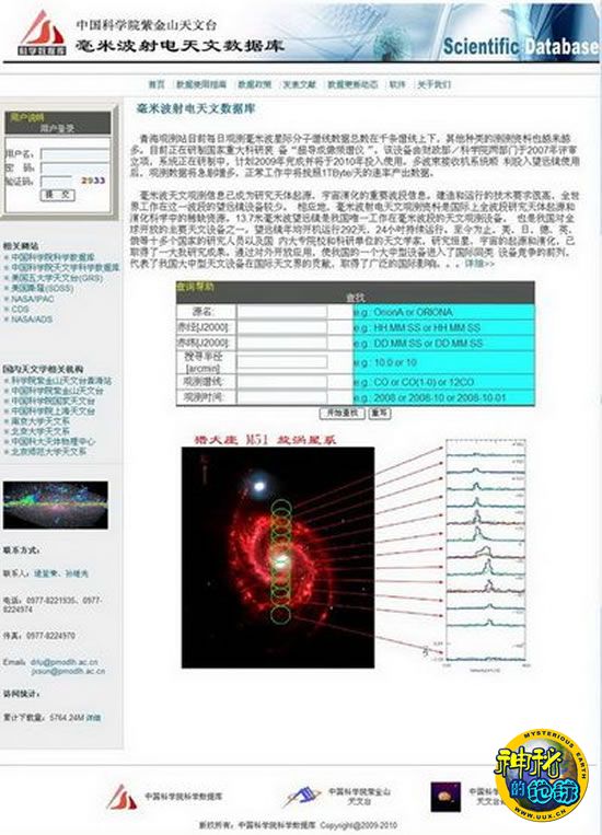 为了提高观测数据的使用效率,实现数据的高度共享,提供各国研究人员使用,提高我国在这一领域的竞争力,紫金山天文台建立了毫米波射电天文数据库。该数据库存储了2003-2009年144万条谱线,谱线数据为通用的fits格式。除跨年度的长期项目外,2009年之前的数据118万条谱线已全部对外开放,所有人都能下载使用。现在,每天观测的数据第二天早晨8:30自动入库,课题观测者可以凭密码登录,下载前一天自己的观测数据。