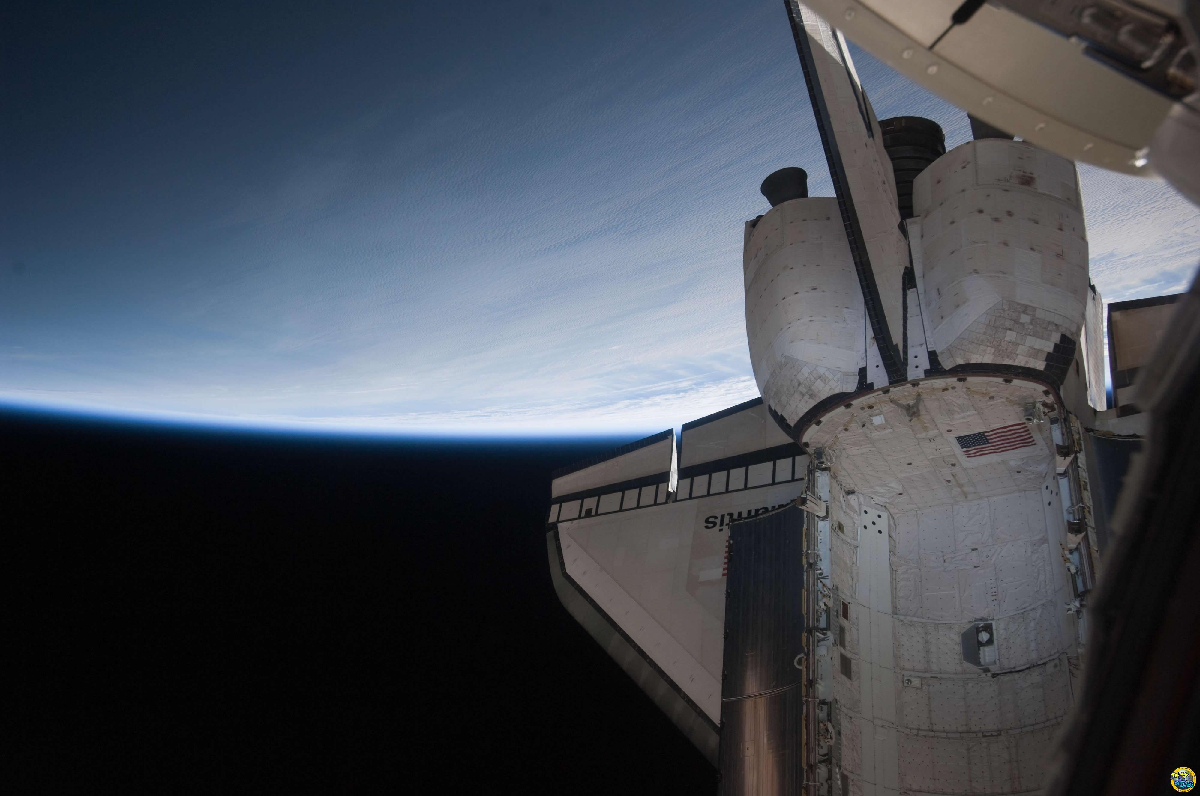 太空中的亚特兰蒂斯号航天飞机与地球地平线