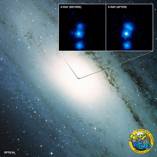 据钱德拉天文台历时10年的研究发现,M31*黑洞在2006年以前呈现出非常暗淡,安静的状态。但到了2006年的1月6日之后,它的亮度却增加了100多倍,这意味着X射线的爆发。而这也是人类首次在自身星系附近的超质量黑洞上观察到此类变化。