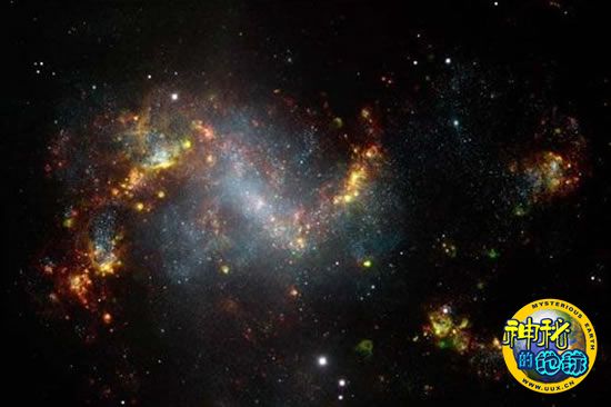 据介绍,在此之前,NGC 1313星系以其频繁的产生新星体活动而被天文学界人士所熟知。但对于NGC 1313星系中星体究竟是如何产生的,天文学家却一直没有找到合理的解释。而这张照片拍摄到的星爆过程或许能给天文学家解释该星系中星体产生原因提供一些宝贵线索。天文学家根据照片推断称,在NGC 1313星系中,正处于不断扩张中的“宇宙超级大泡泡”边缘附近,气体正在不断堆积,这或许是诱发新星体诞生的原因之一。