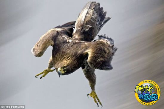 金雕以每小时240公里以上的速度迅速俯冲,扑向猎物,速度之快令人震惊