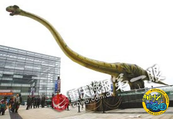 重庆科技馆外,根据合川马门溪龙比例做的模型