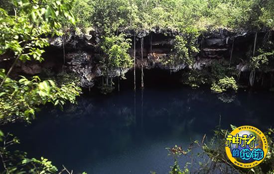 这是联合国教科文组织潜水员曾探索过的墨西哥海底溪水洞的入口。联合国教科文组织保护的文化遗产包括海底史前文物和海底洞穴中保留的古人生活的痕迹。