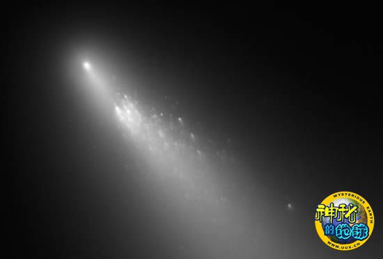 A Hubble Space Telescope picture shows a comet breaking apart on April 18, 2006.