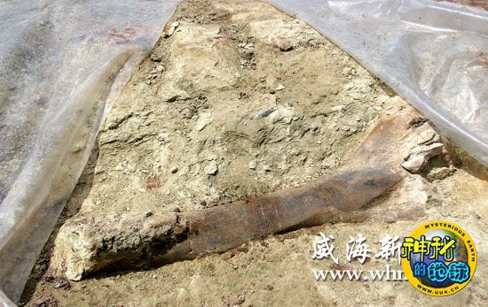 这是在2号发掘地拍摄的一个目前暴露在外的最长的一块恐龙骨骼化石。