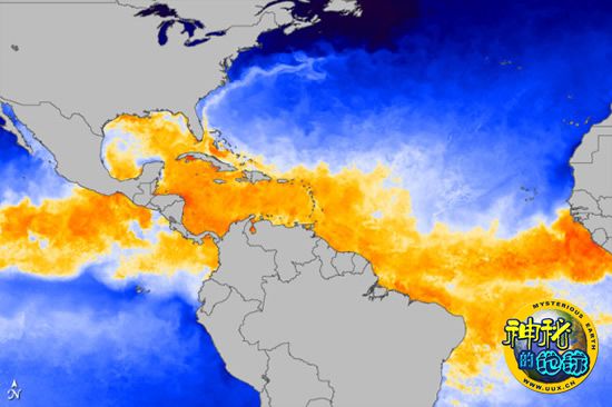这是美国宇航局卫星绘出的今年飓风季海温图。海水温度足够形成飓风的区域以黄色和红色显示。水温过低、无法形成飓风的区域以蓝色显示。