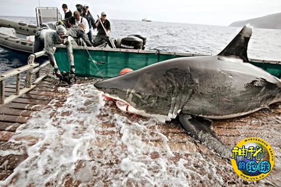 追踪大白鲨 来源: 神秘的地球 时间:2010年6月08日 17:13 2.提升出水面 提升出水面 2008年,墨西哥附近的太平洋水域,一台液压升降机将一条落入陷阱的大白鲨升上水面。在被送上甲板以后,大白鲨被绑在这个升降平台上大约15分钟,探险队队员在此期间抽取血样,对鲨鱼进行测量,将一个跟踪天线安在它的背鳍上。 据探险队领队、美国加州海洋生物保护科学研究所主任多梅尔介绍,巨型“鲨鱼升降机”已经消除了“我们在研究大白鲨时所常遇到的一个障碍”。他说,以前,由于大白鲨在水中会对研究人员构成很大的威胁,他们只能与死亡鲨鱼标本做如此近距离的接触。 上一页123456下一页 上一篇 下一篇