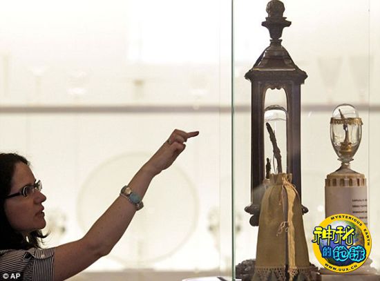 一名妇女正在观看在佛罗伦萨博物馆展出的伽利略2根手指