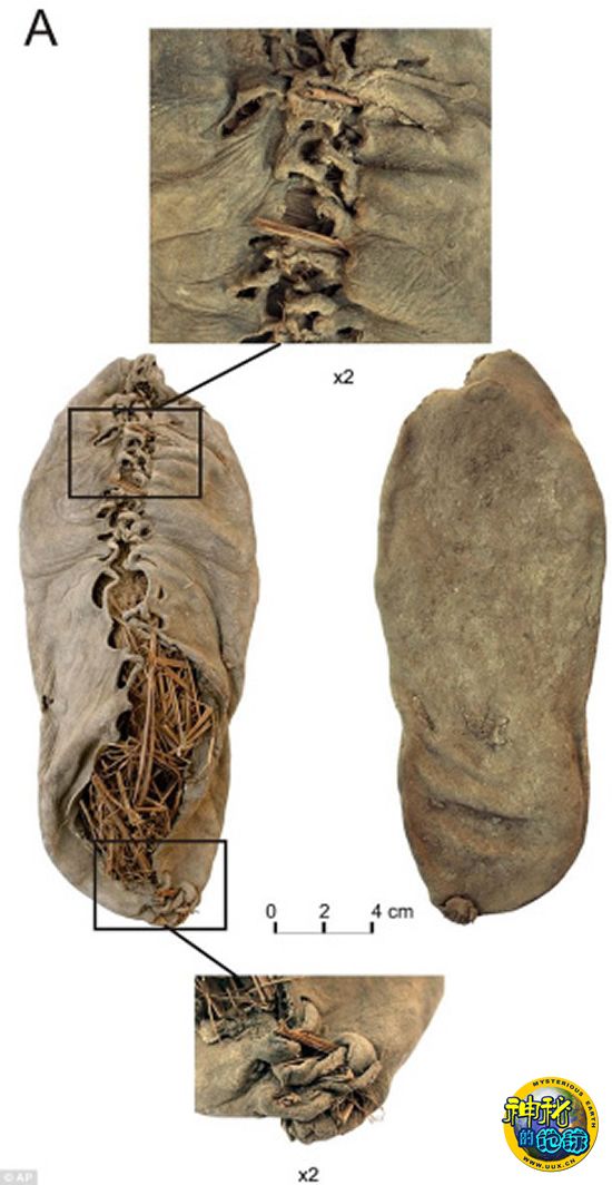 研究人员表示现在尚不清楚鞋子里面的干草到底是充当衬里,起到隔离作用还是保持皮鞋外形。皮哈西说,亚美尼亚发现的皮鞋如果按照今天的标准——相当于欧洲的37码或者美国女性的7码——无疑是支“小鞋”,但它的主人可能是一名男性。根据他的描述,这支鞋子由一块皮子制成,后面有4组鞋眼,利用带子穿过鞋眼将两端固定在一起。前面有15组鞋眼,同样使用带子从头至尾穿过绑定两端。