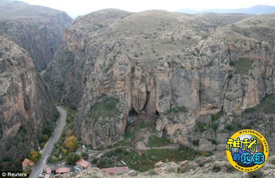 图中央用蓝色标出的就是发现最古老皮鞋的山洞入口