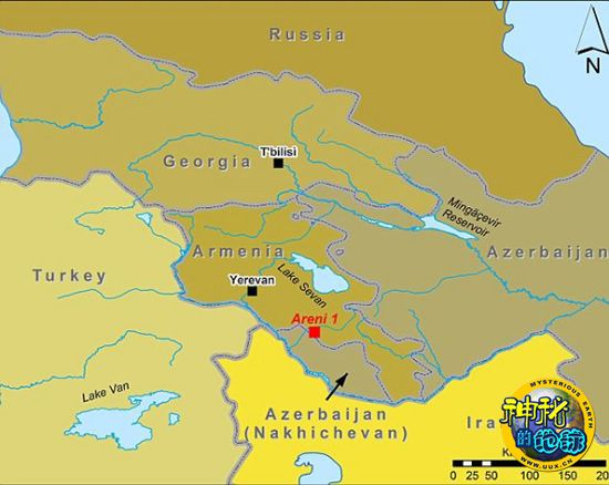 这只鞋是在亚美尼亚古老的“肥沃月湾”发现的,用红色正方形标出的就是发现鞋的具体地点