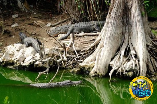 佛罗里达州的巨杉国家自然保护区,几只美国短吻鳄聚集在一棵柏树的树根附近。美国国家公园管理局目前正在对八座国家公园进行监控,以随时发现遭到墨西哥湾漏油破坏的迹象,巨杉国家自然保护区就是其中之一。美国国家公园管理局选择监控的公园全部位于美国墨西哥湾沿岸,即从得克萨斯州延伸至佛罗里达州。