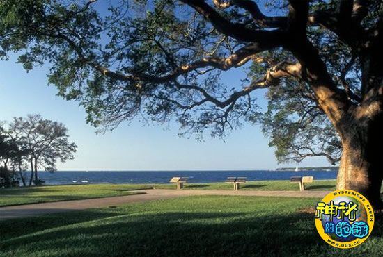 佛罗里达州的迪索托国家纪念公园(De Soto National Memorial),从这个观景点向远望去,墨西哥湾碧绿的海水一望无际。这座公园以16世纪初期从陆路发现佛罗里达州部分土地的西班牙探险家赫南多-迪-索托(Hernando de Soto)命名。迪索托国家纪念公园是垂钓和玩皮划艇的好去处,目前仍对游人开放,看上去并未受到墨西哥湾漏油的影响。这座公园80%左右的园区属于红树林沼泽,剩余园区则由松树平原和阔叶林构成。作为墨西哥湾部分鱼类的栖息地,红树林对该地区生态系统及捕鱼业的未来至关重要。