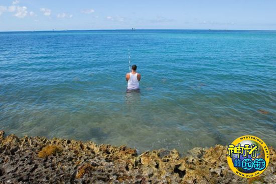 佛罗里达州的比斯坎国家公园,一名男子在墨西哥湾海岸的浅水中垂钓。迄今,比斯坎国家公园海岸附近尚未发现浮油,不过美国国家公园管理局的工作人员已为浮油的来袭做好准备。同许多受监控的区域一样,工作人员已经从比斯坎国家公园搜集了土壤和水的样本,作为未来比较的基本数据。埃姆泽尔莫说:“我们从一开始就参与了国家公园的管理和监控。国家公园以前就在这里,在墨西哥湾漏油事故后仍会在这里。我们会继续在墨西哥湾保持存在,而这种存在已有一百多年的历史。”