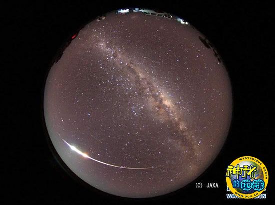 这是6月13日在澳大利亚南部伍默拉附近的沙漠地带用鱼眼镜头拍摄的日本“隼鸟”号探测器的密封舱下降的图片。日本宇宙航空研究开发机构的“隼鸟”号小行星探测器13日夜进入大气层,降落在澳大利亚南部伍默拉附近的沙漠地带,时隔7年后回归地球。这是人类的探测器首次往返于地球和月球之外的天体。新华社/法新