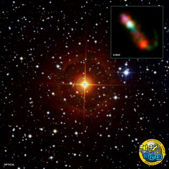 目前,天文学家们观测的他们发现该共生恒星具有一个射电和X射线波长下可探测的喷射流,它从恒星释放可以延伸至750个天文单位。小插图就显示了这一强大的喷射流。来自美国加利福尼亚州大学的4位天文学家和他们的两位同事负责该项研究,他们通过“钱德拉”X射线观测台、哈勃望远镜和甚大阵射电望远镜研究该恒星系统,并观测到喷射流。