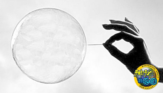 现在,你只需静静地等着泡沫破裂,如果你等得不耐烦了,也可以用手把它弄破。围着泡沫边缘仔细观察,你就能看到那串美丽的小气泡。