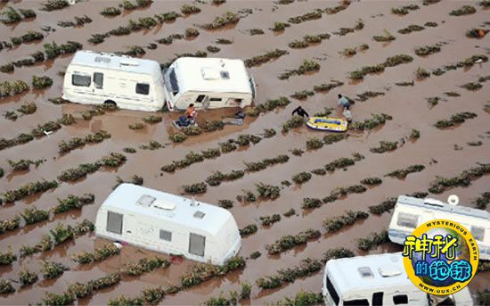 这是法国自1827年以来降下的最猛烈暴雨,其主要成因是来自阿尔及利亚高原的热气团经过地中海上空时变得潮湿,此后又在高山区与冷气团相遇,从而形成了大规模的降雨。