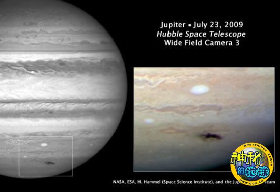 2009年7月19日时,澳洲的一位天文学家安东尼-卫斯理观测到了木星被小天体撞击的瞬间,而那次撞击给木星造成了很大的创伤,天文学家们通过哈勃望远镜观测发现,这次撞击造成了相当于太平洋大小的暗斑,大约相当于一颗直径500公里的小行星造成的。