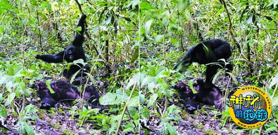 一只雄黑猩猩袭击并杀死另一只黑猩猩的现场画面